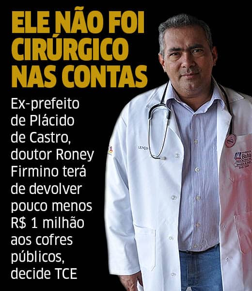 O ex-prefeito de Plácido de Castro, Roney Firmino (PSB), terá de devolver mais de R$ 920 mil aos cofres públicos da cidade. Isso porque, quando gestor, não prestou conta do dinheiro desembolsado para a compra de combustíveis necessários aos serviços da cidade. A decisão é do Tribunal de Contas do Acre (TCE/AC).
