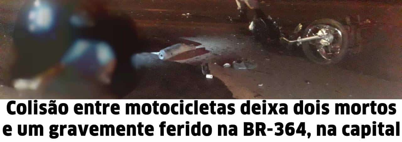 Uma colisão entre duas motocicletas deixou duas pessoas mortas e outra gravemente ferida na noite desta sexta-feira (17), no km 14 da BR-364, na região do Bairro Liberdade.