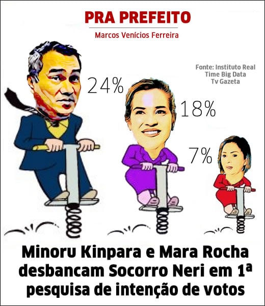 Minoru Kinpara e Mara Rocha desbancam Socorro Neri em 1ª pesquisa de intenção de votos