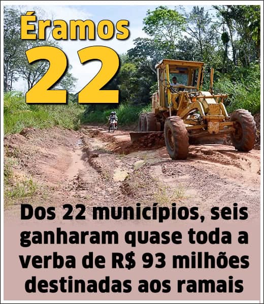 Dos 22 municípios, 6 ganharam quase toda a verba de R$ 93 milhões destinadas aos ramais