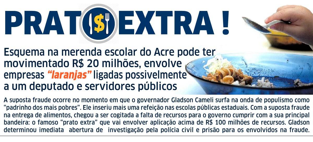 A suposta fraude ocorre no momento em que o governador Gladson Cameli surfa na onda de populismo como “padrinho dos mais pobres”. Ele inseriu mais uma refeição nas escolas públicas estaduais.