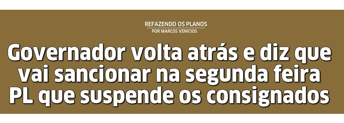 Governador volta atrás e diz que vai sancionar na segunda PL que suspende os consignados