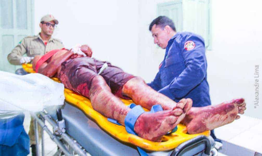Era por volta das 19h40 deste sábado, quando socorristas dos bombeiros chegaram no hospital de Brasiléia, trazendo um homem de 32 anos, identificado como Deurisvan da Silva Ferreira, ferido gravemente e sangrava bastante.