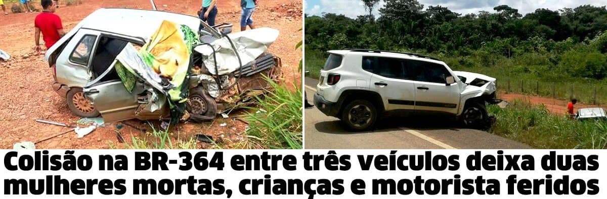 Colisão na BR-364 entre três veículos deixa duas mulheres mortas, crianças e motorista feridos