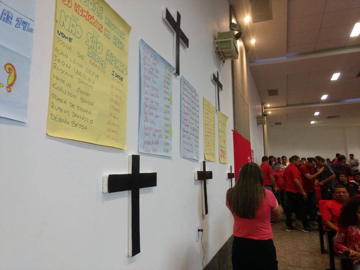 Um fato chamou a atenção durante os dois dias de evento do Partido dos Trabalhadores no Acre, na Uninorte, durante o último final de semana, neste domingo, 04, e no sábado, 03: várias cruzes e uma lista com os nomes das mais de 50 vítimas de homicídio este ano escrita à mão em cartolinas na parede do auditório onde ocorria o encontro. A lista foi feita pelo setor da juventude do partido.