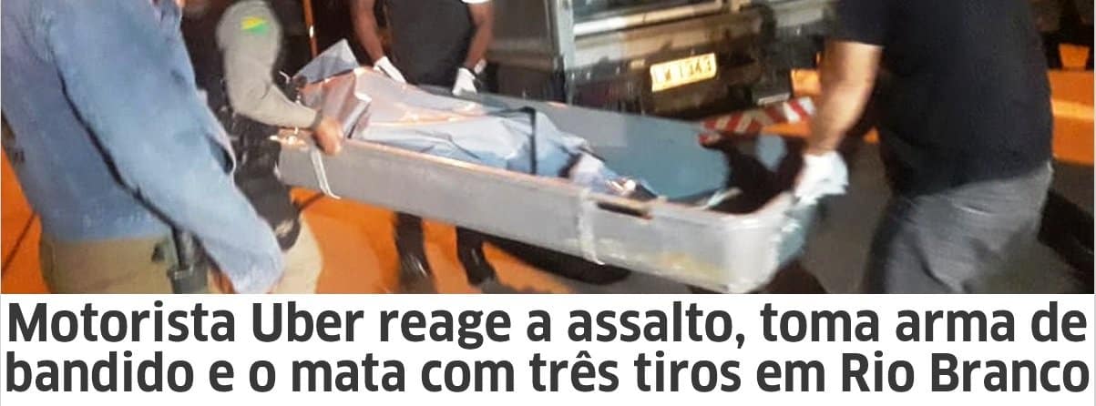Motorista Uber reage a assalto, toma arma de bandido e o mata com três tiros em Rio Branco