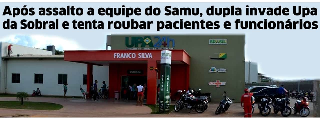 Os bandidos resolveram de vez cometer roubos na área da saúde. Na madrugada desta quarta-feira (4) homens armados roubaram o Serviço de Atendimento Móvel de Urgência (Samu) durante um atendimento a um paciente. Nesta quarta-feira, os criminosos resolveram fazer mais um roubo, só que na Unidade de Pronto Atendimento (UPA Franco Silva), na Baixada da Sobral, em Rio Branco.