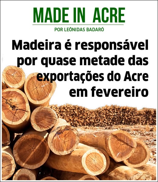 Segundo os dados, o Acre exportou no mês de fevereiro US$ 3,3 milhões de dólares. Desse total, 60,2% vem da floresta. A maior parte é madeira, que corresponde a 42,7%. O restante vem da exportação de castanha do Brasil, seja fresca ou seca, com ou sem casca.