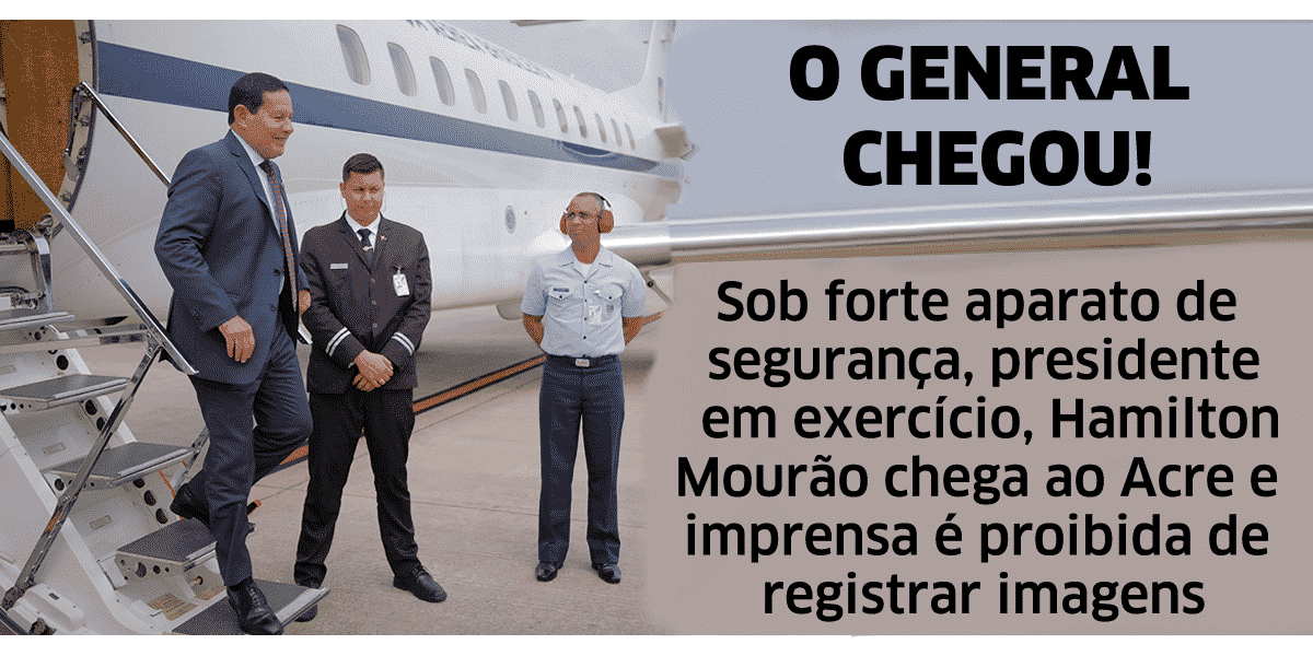 Sob forte aparato de segurança, presidente exercício, General Mourão chega ao Acre e imprensa é proibida de registrar imagens