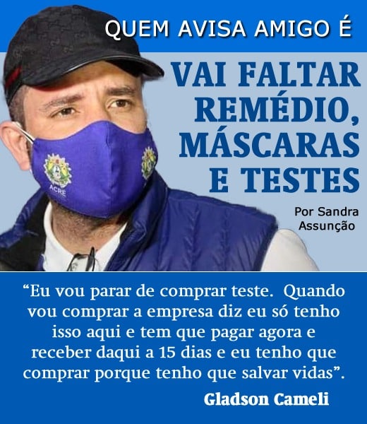 “Eu vou parar de comprar teste. Quando vou comprar a empresa diz eu só tenho isso aqui e tem que pagar agora e receber daqui a 15 dias e eu tenho que comprar porque tenho que salvar vidas”. Dito isso, lembrou o governador que “isso tudo é meu nome e meu CPF que estão lá e uma hora a conta chega e o que aconteceu aqui em Cruzeiro do Sul poderia ter acontecido comigo”.